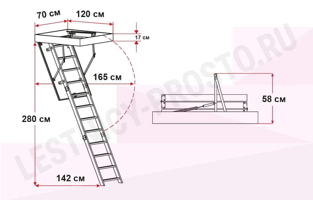 Чердачная лестница OMAN Alu-Profi 70×120 см, h-280 см