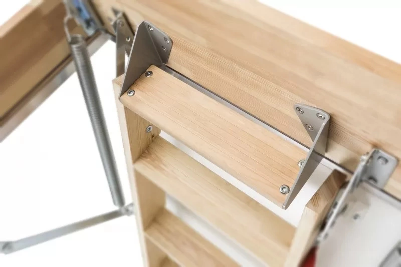 Лестница обладает повышенной теплоизоляцией и низкими показателями воздухопроницаемости крышки. Облегченная крышка люка изготовлена из пенополистирола без применения дополнительных деревянных элементов. Наконечники имеют возможность регулировки, что позволяет подогнать длину лестницы по высоте помещения в случае излишнего подрезания лестницы или изменения толщины пола.
