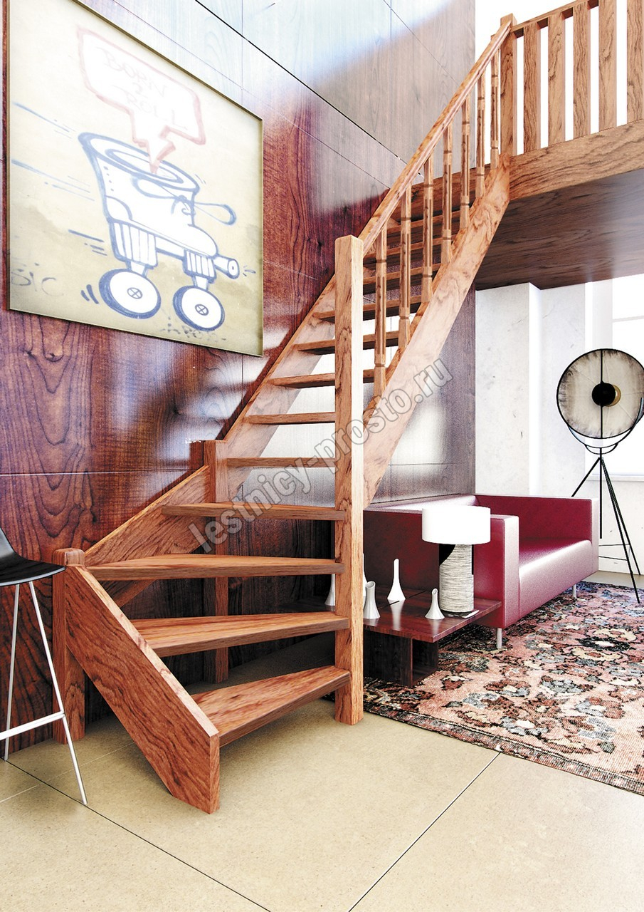 Деревянная межэтажная лестница ЛЕС-07 3085-3290 проем 2930-830, Сосна