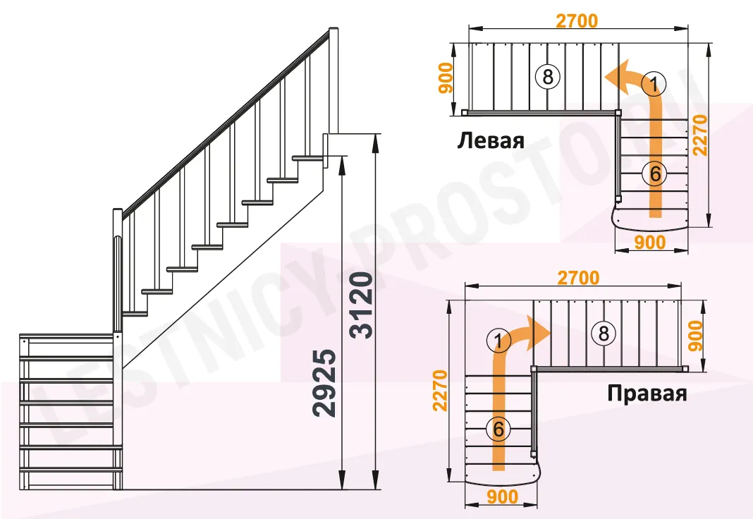| Лестница из сосны К-002М/1 с подступёнками под покраску |