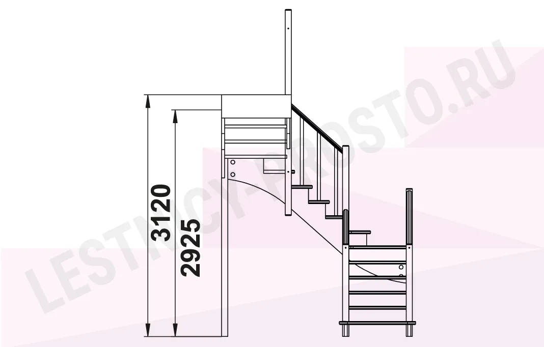 Схема лестницы К-009М/2 с поворотом налево