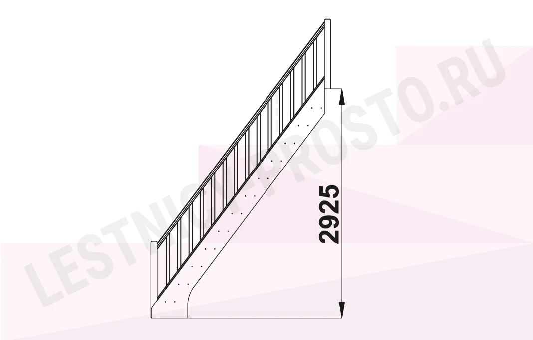 Базовый комплект включает в себя деревянные элементы лестницы и ограждения без какого-либо покрытия. Ограждение можно установить справа или слева.
