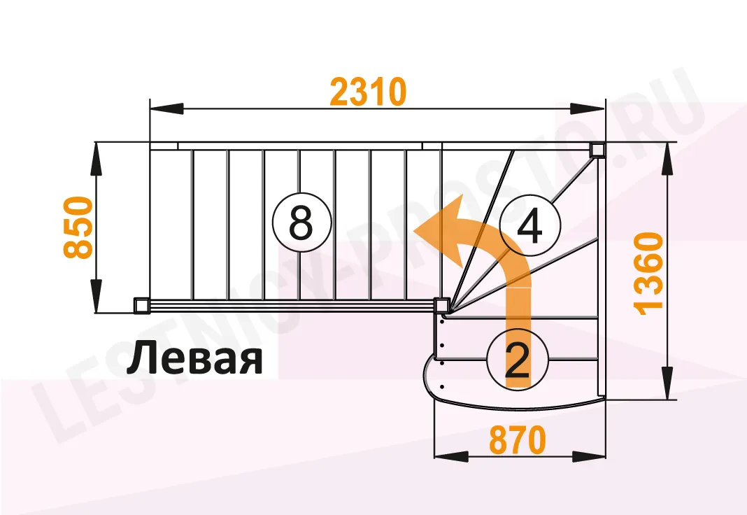 Лестница из сосны ЛС-07М/5 с подступёнками под покраску