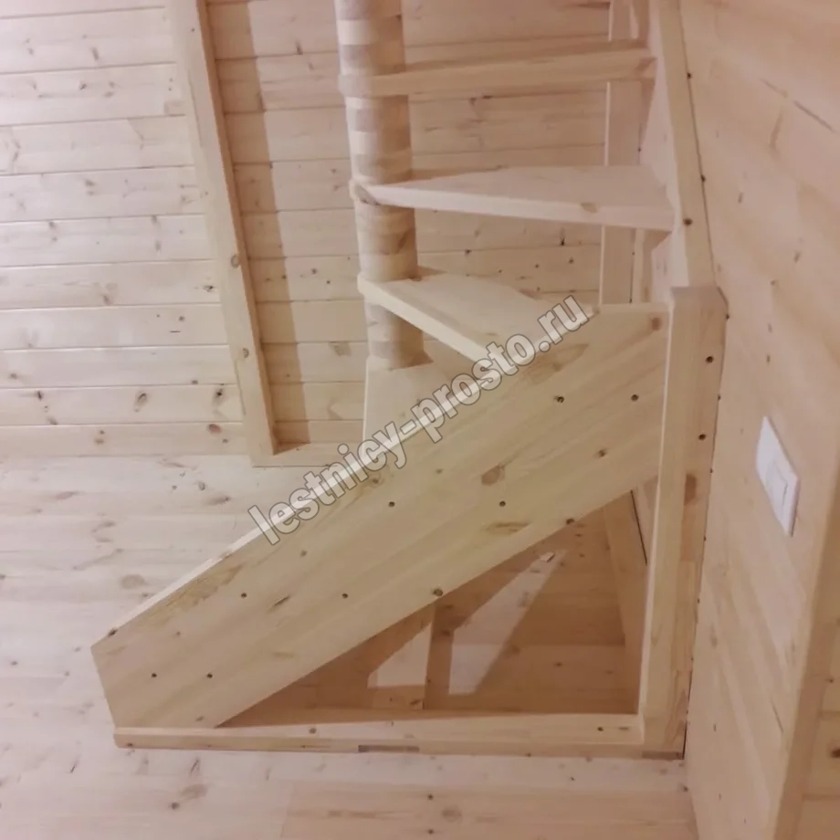 В производстве лестницы ЛС-1.2хм под покраску используется сосна с небольшими изменениями цвета, что практически не влияет на ее механические свойства и почти незаметно при покраске в темные цвета. Базовый комплект включает в себя деревянные элементы лестницы и ограждения без какого-либо покрытия.
