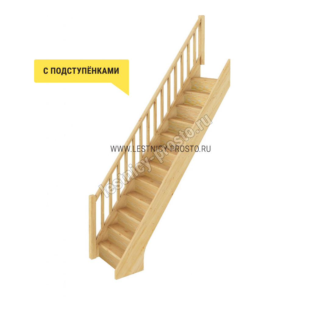 В производстве лестницы ЛС-10м под покраску используется сосна с небольшими изменениями цвета, что практически не влияет на ее механические свойства и почти незаметно при покраске в темные цвета. Базовый комплект включает в себя деревянные элементы лестницы и ограждения без какого-либо покрытия. Ограждение можно установить слева или справа.