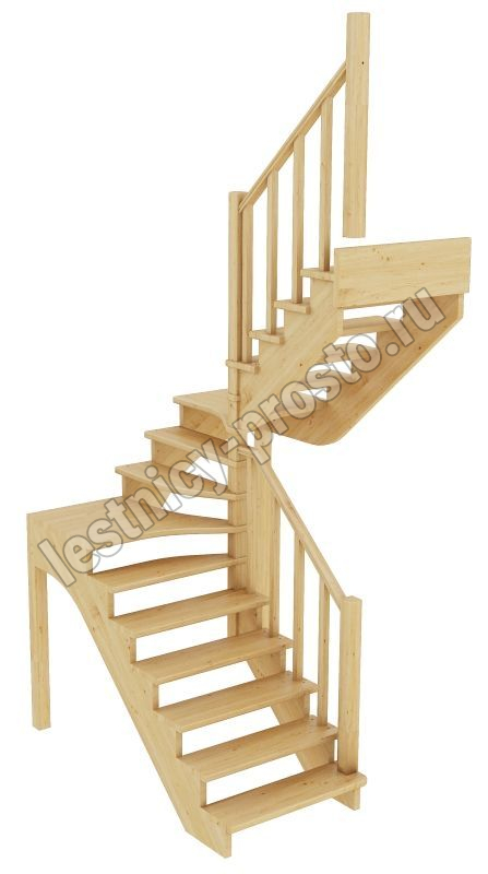Ограждение лестницы с одной стороны. Базовый комплект включает в себя деревянные элементы лестницы и ограждения без какого-либо покрытия.