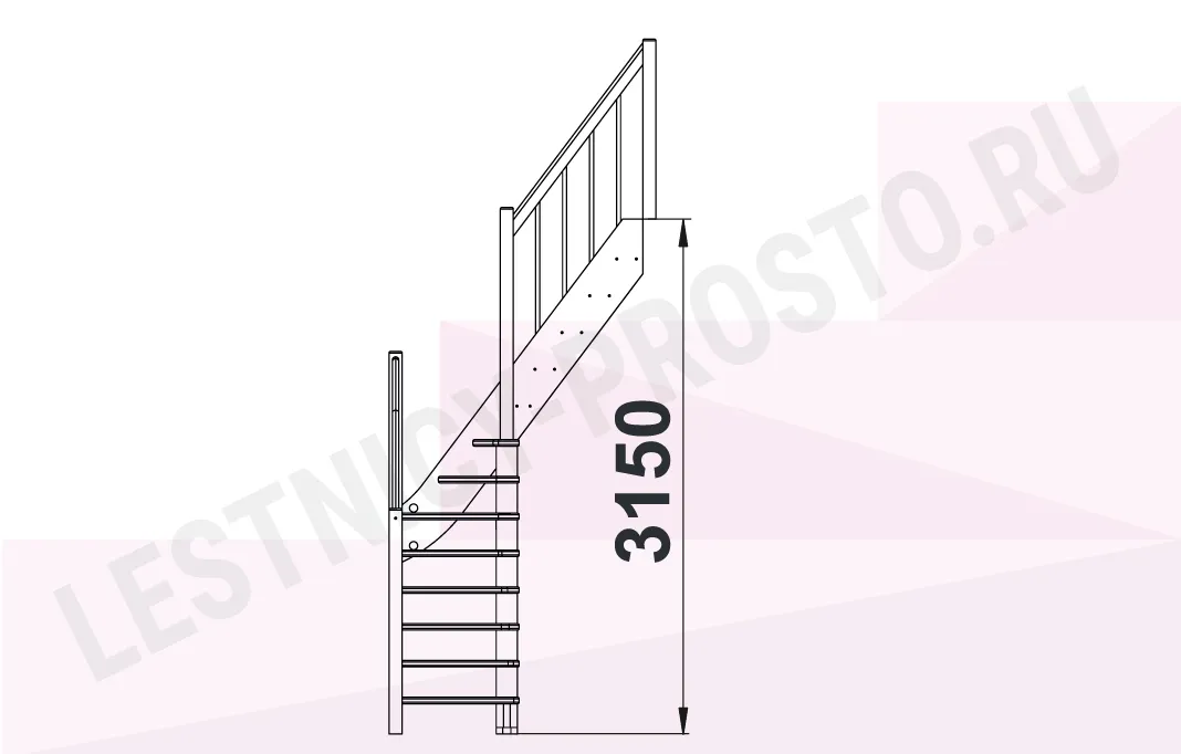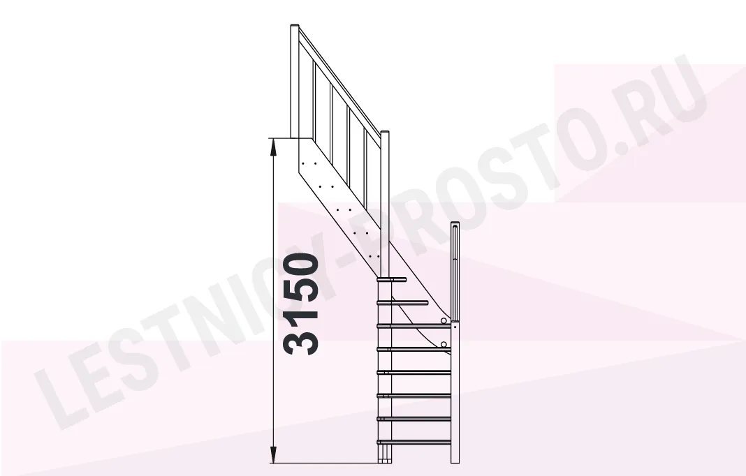 Лестница из сосны под покраску ЛС-91М+2 ступени сверху