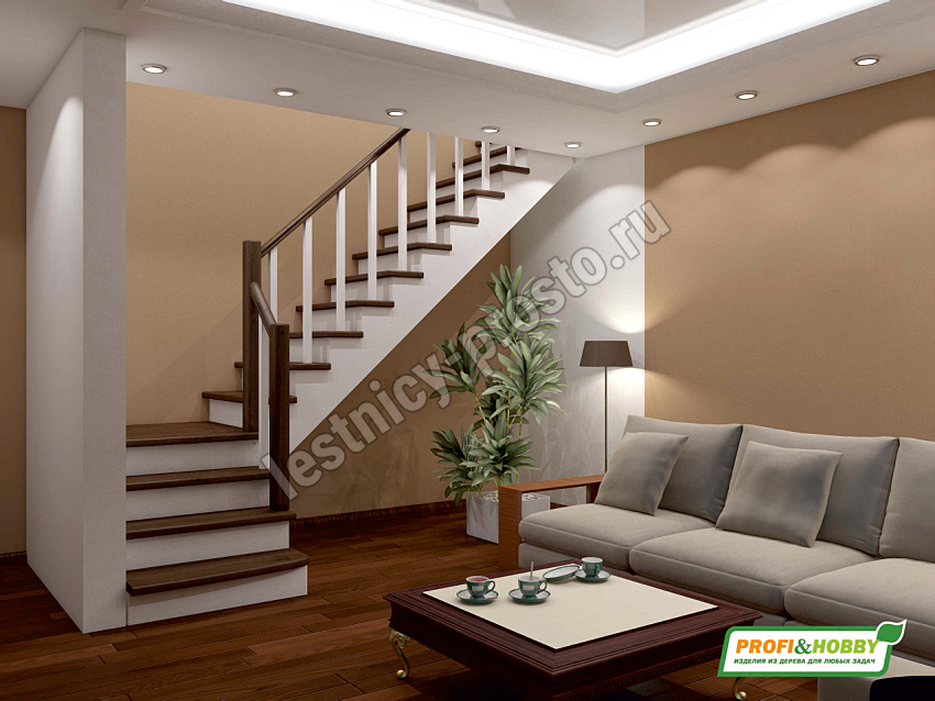 Ступени и поручень лестницы изготовлены из ясеня, остальные элементы из сосны.