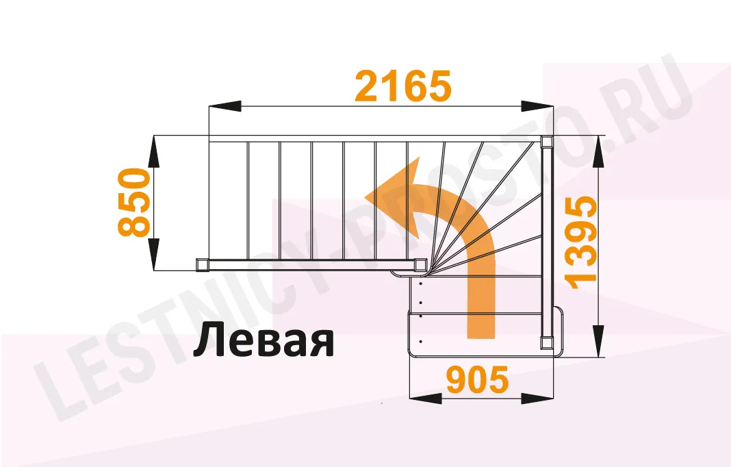 Лестница ЛС-225М с поворотом налево