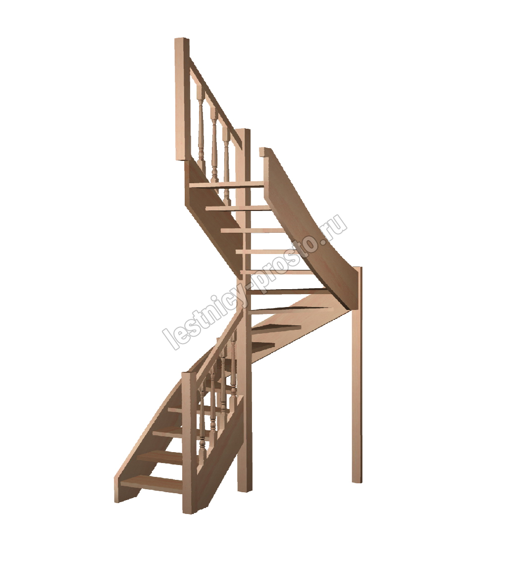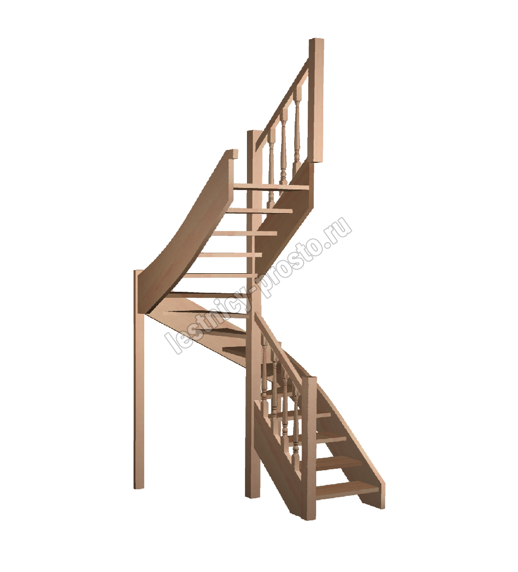 Базовый комплект включает в себя деревянные элементы лестницы и ограждения без какого-либо покрытия. В стандартной комплектации лестницы поставляются с квадратными столбами и точеными балясинами.