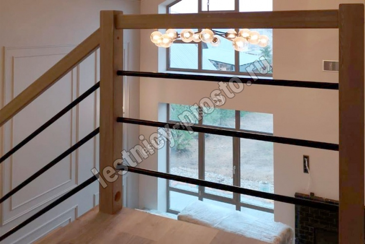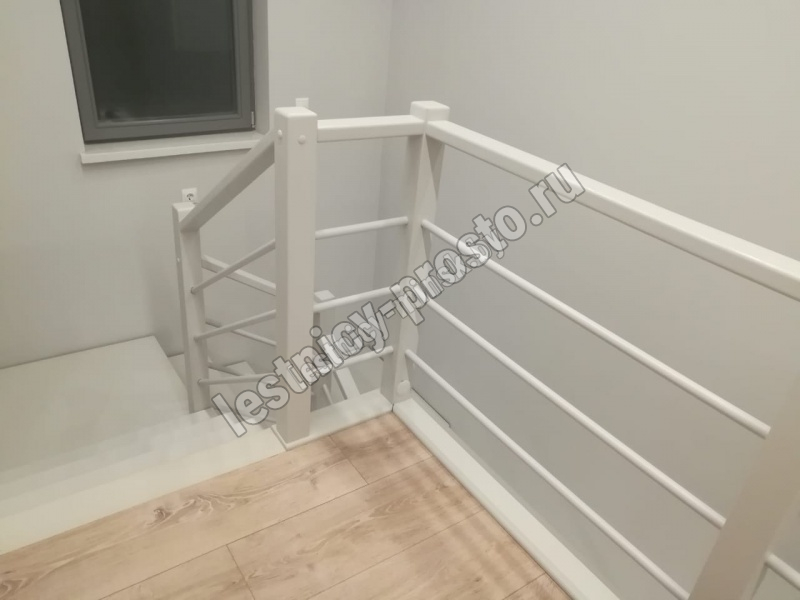 В комплекте: 3 прямых столба и профильный поручень без покрытия, комплект из 3 ригелей из стали (окрашены в цвет каркаса или хром по желанию) диаметром 12 мм. Ограждение начинается со второй ступени.