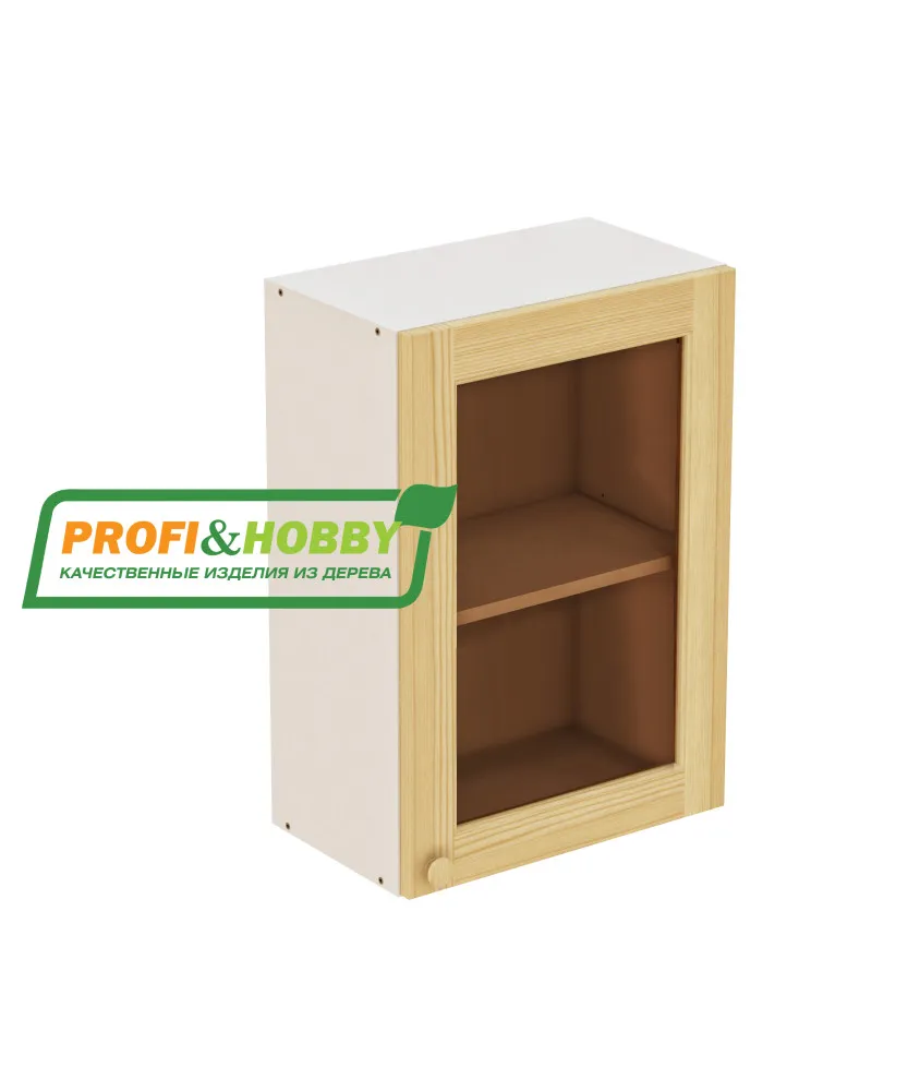 Шкаф навесной 1 дверь 600х340х360 + фасад сосна бесцветный акриловый лак