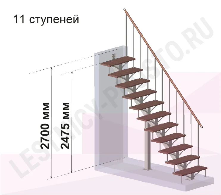 Лестница PROSTO MONO прямая, h270 см, ступени бук