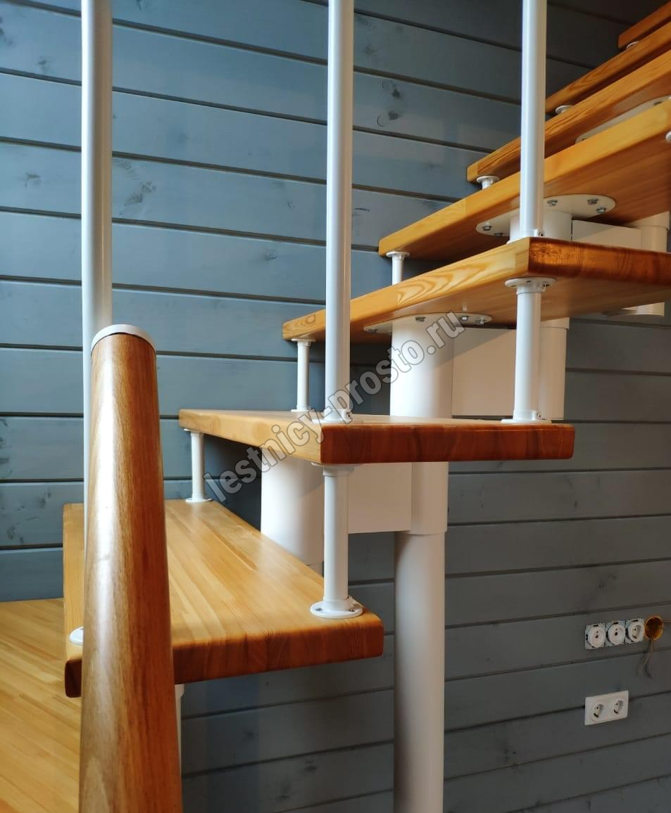 Каркас лестницы представляет собой набор модулей, которые комплектуются уже готовыми к монтажу.