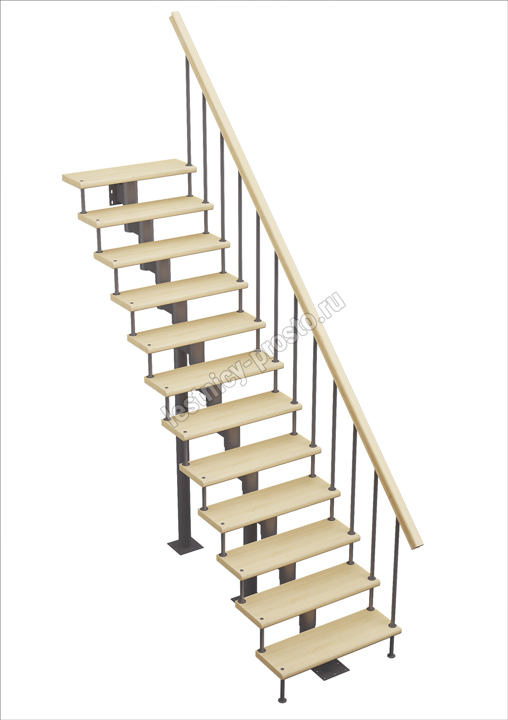 Поставляется в разобранном виде. Лестницу не сложно собрать и установить самостоятельно, при наличии базовых навыков работы с необходимыми инструментами. Если хотите сэкономить время и силы - вы можете заказать монтаж лестницы нашими специалистами.Упаковка: