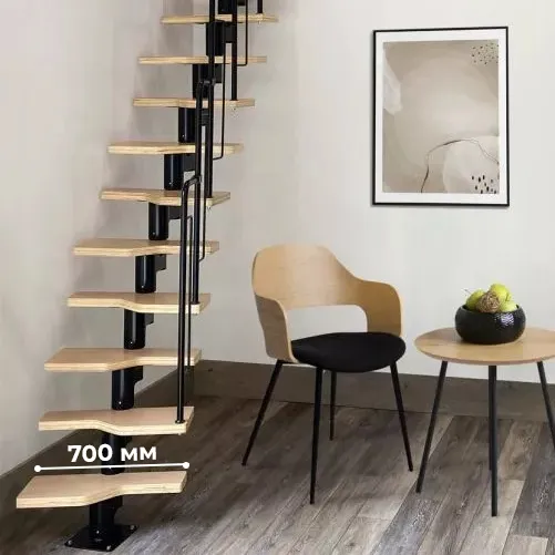 Лестница Prosto Urban Black гусиный шаг 700 мм, h180-264 см (10 ступеней), ясень