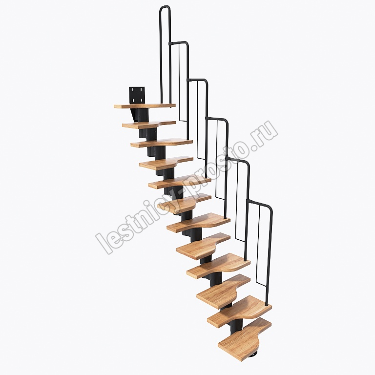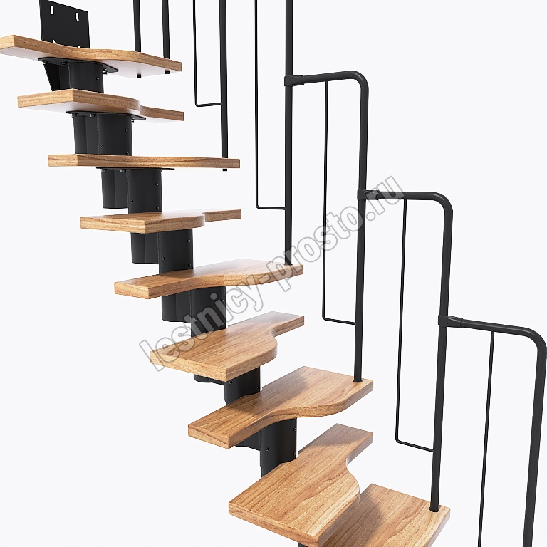 Лестница Prosto Urban Black гусиный шаг 600 мм, h216-312 см (12 ступеней), ясень