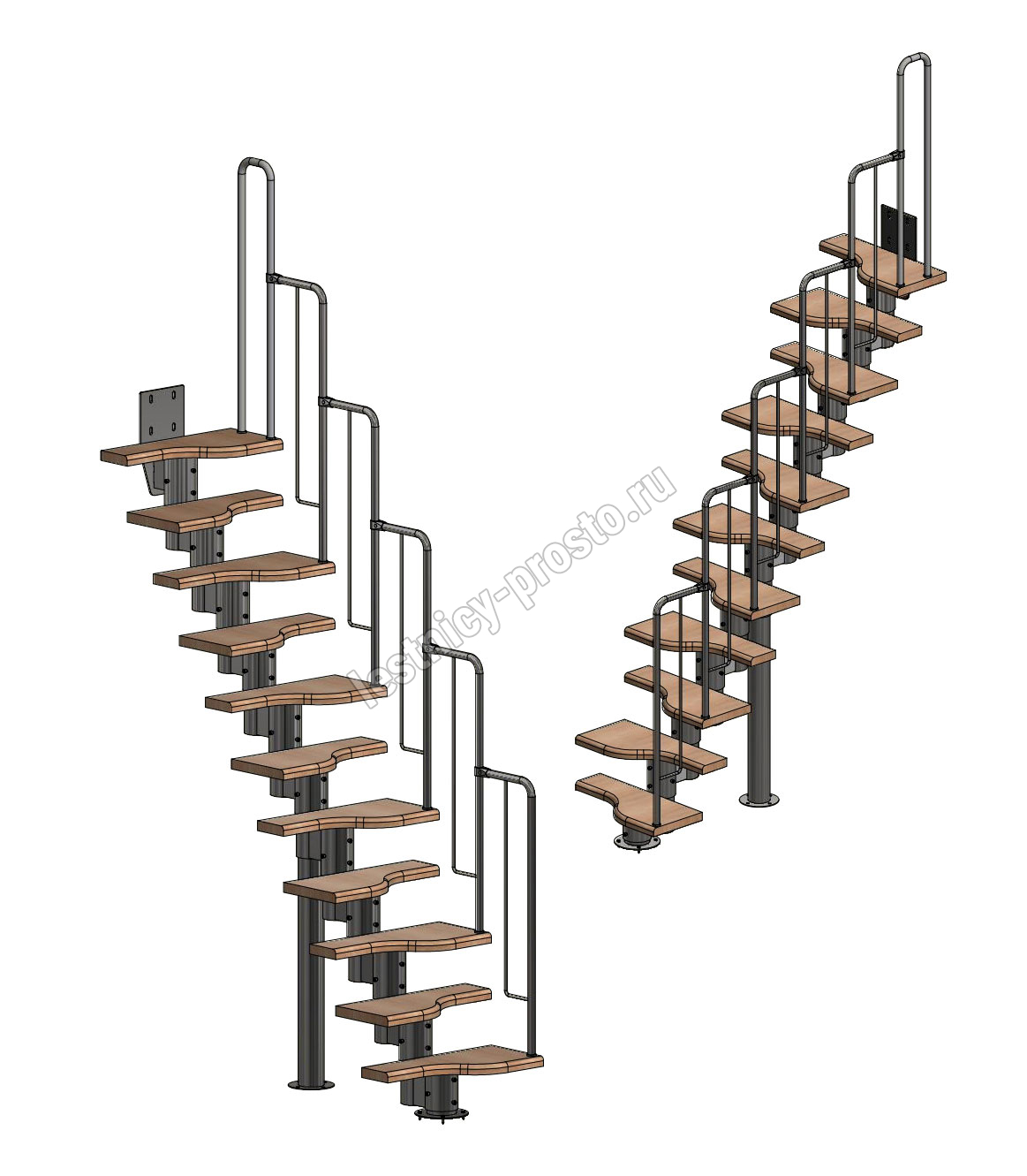 Лестница Prosto Urban Black гусиный шаг 600 мм, h198-288 см (11 ступеней)