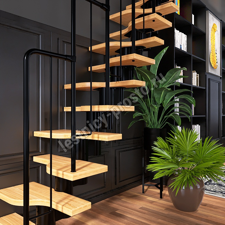 Лестница Prosto Urban Black гусиный шаг 600 мм, h234-336 см (13 ступеней), бук |