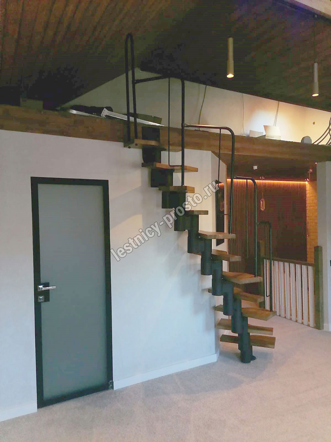 Лестница Prosto Urban Black гусиный шаг 600 мм, h180-264 см (10 ступеней), дуб |