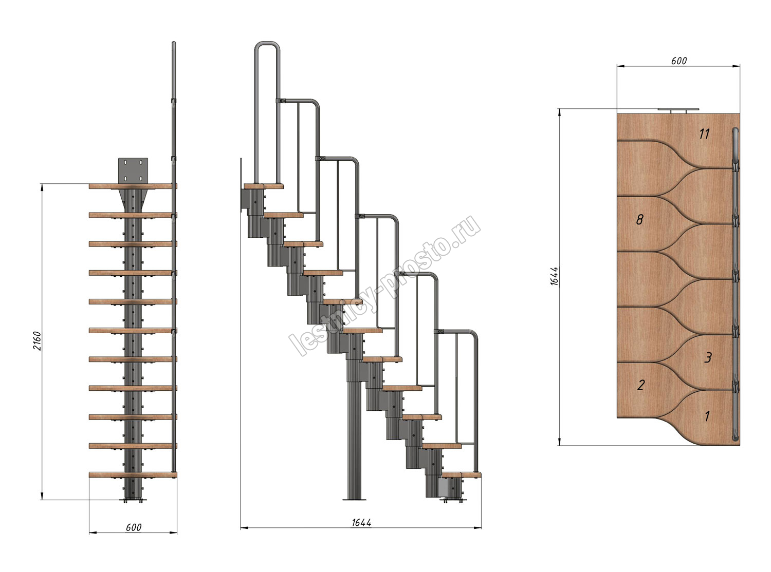 Лестница Prosto Urban Black гусиный шаг 600 мм, h180-264 см (10 ступеней), бук |