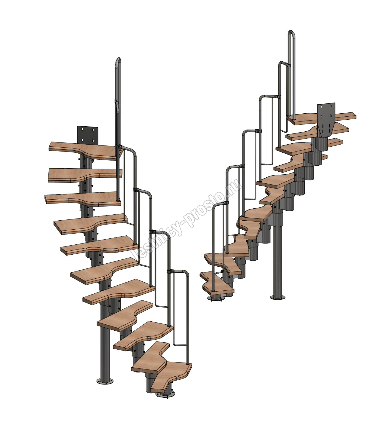 Лестница Prosto Urban White гусиный шаг 700 мм, h198-288 см (11 ступеней), бук