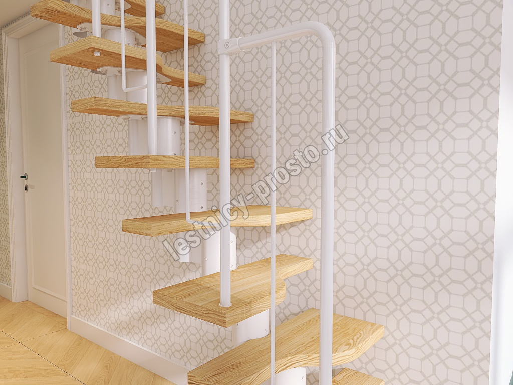 Лестница Prosto Urban White гусиный шаг 700 мм, h198-288 см (11 ступеней), ясень