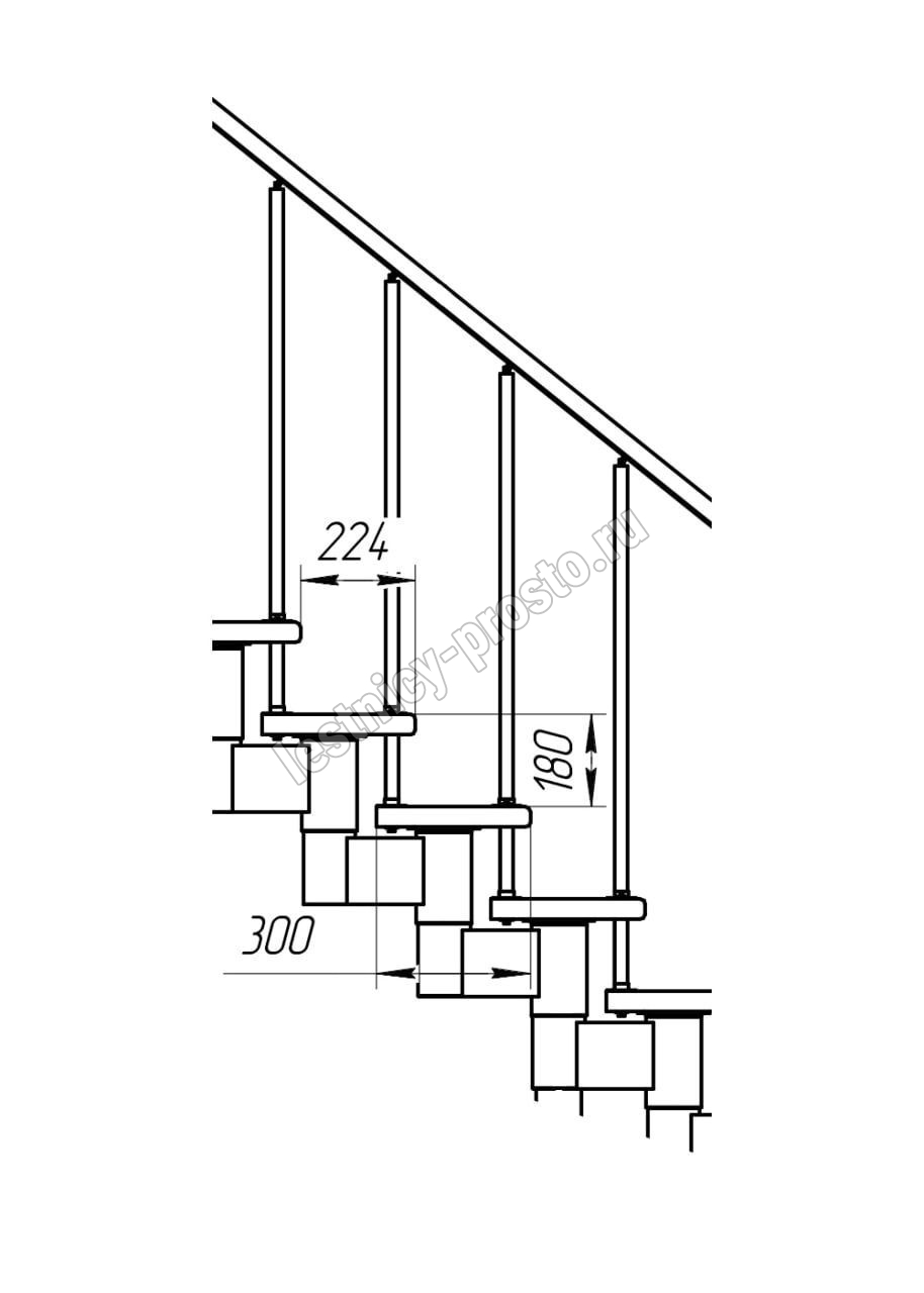 Модульная лестница Фаворит 180 2340-2470, Черный, Бук, Нержавеющая сталь