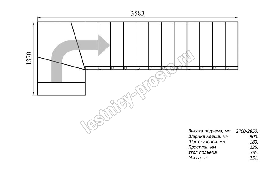 Высота лестницы 2700 - 2850 мм