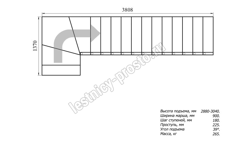 Модульная лестница Фаворит 180 2880-3040, Серый, Сосна, Крашеная, Без Ступений