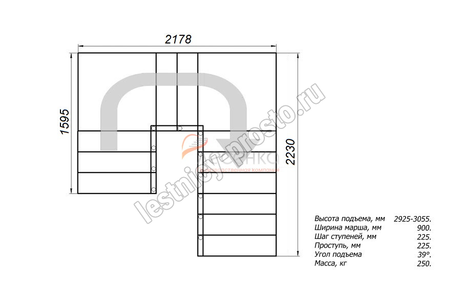 Модульная лестница Комфорт 225 2925-3055, Черный, Сосна, Нержавеющая сталь