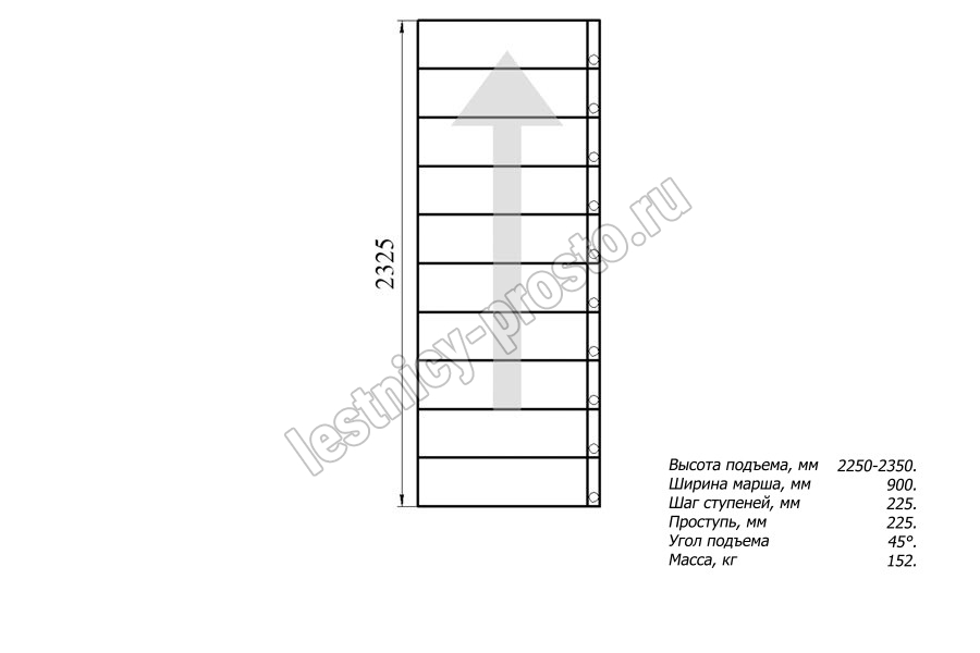 Модульная лестница Стандарт 2250-2350, Черный, Сосна, Крашеная, Без Ступений