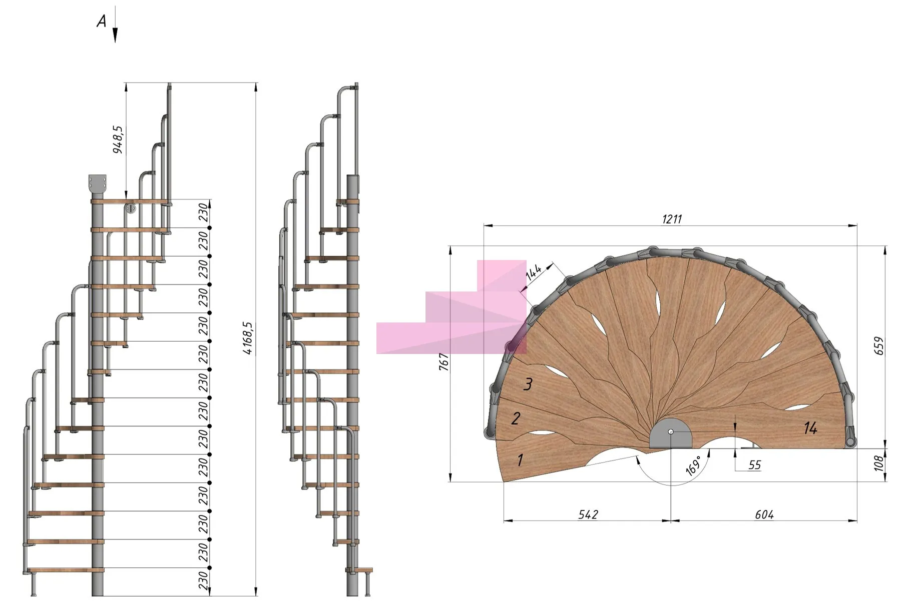 Винтовая лестница PROSTO MINI 60×120 см, h322-345 см