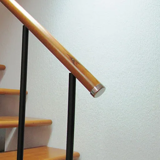 Стальные стойки Ф25мм (по одной на ступень) + ПВХ поручень Ф50.