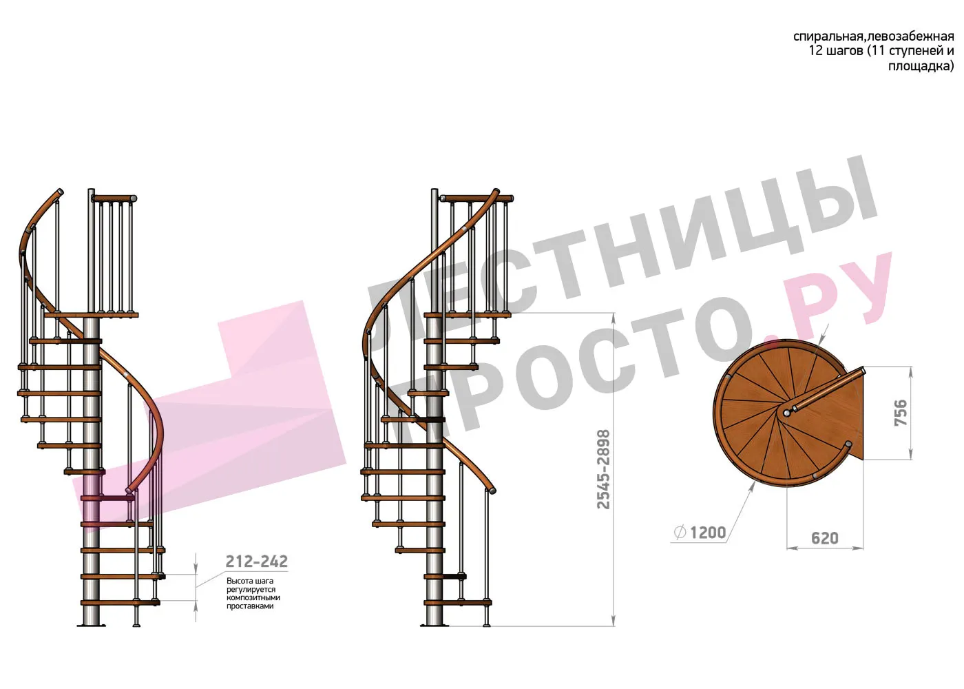 Высота ступеней регулируется с шагом 3 мм. в пределах 212-242 мм., благодаря чему, лестница прекрасно подгоняется под необходимую высоту.