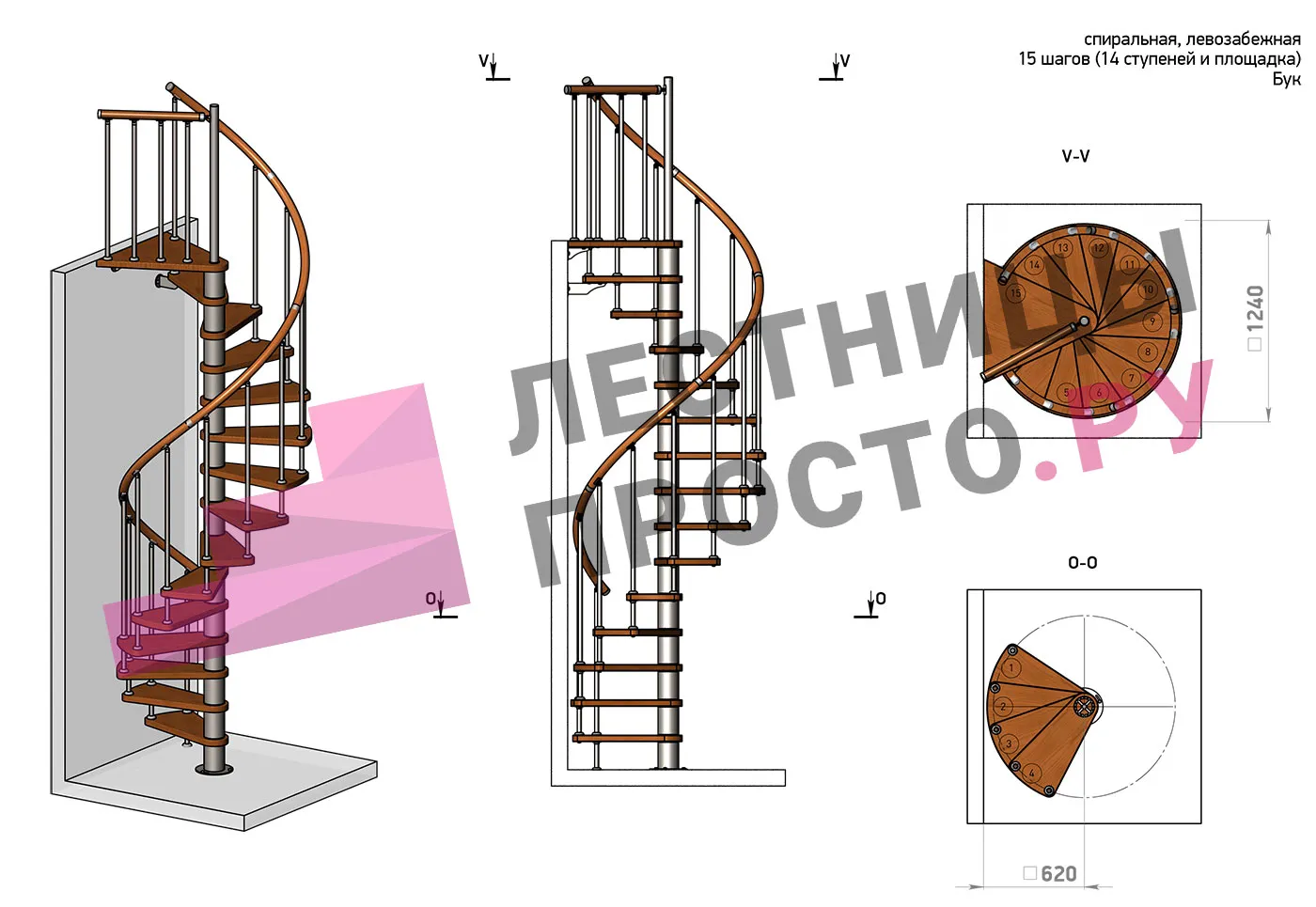| Винтовая лестница Prosto Spiral White D120см, h282.2-326,3 см, бук |