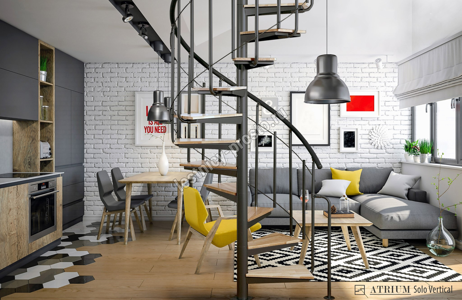 SOLO VERTICAL - это современная винтовая лестница, не требующая много места. Промышленный дизайн лестницы подчеркивают стальные тросы, используемые в балюстраде.