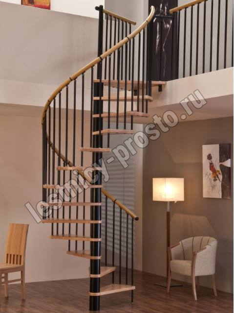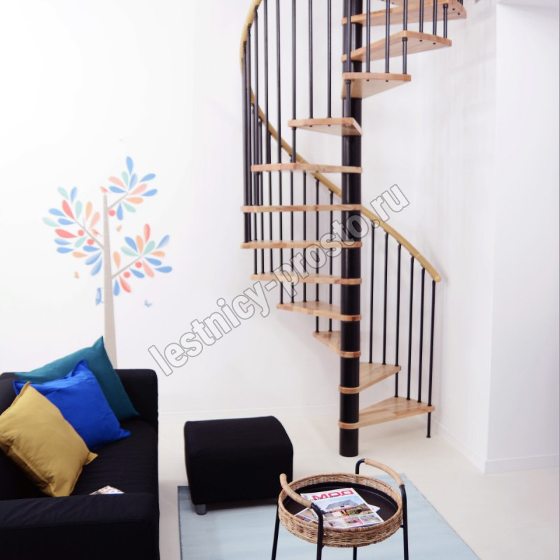 Винтовая лестница SPIRAL WOOD d120 см, черная, лакированный бук |