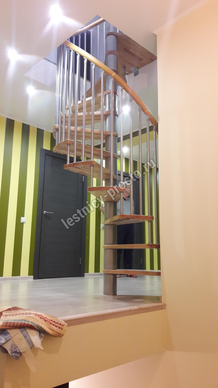 Винтовая лестница SPIRAL WOOD d120 см, серебро, лакированный бук |