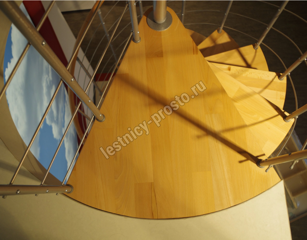 Винтовая лестница Venezia d140 см, серебро, бук лакированный