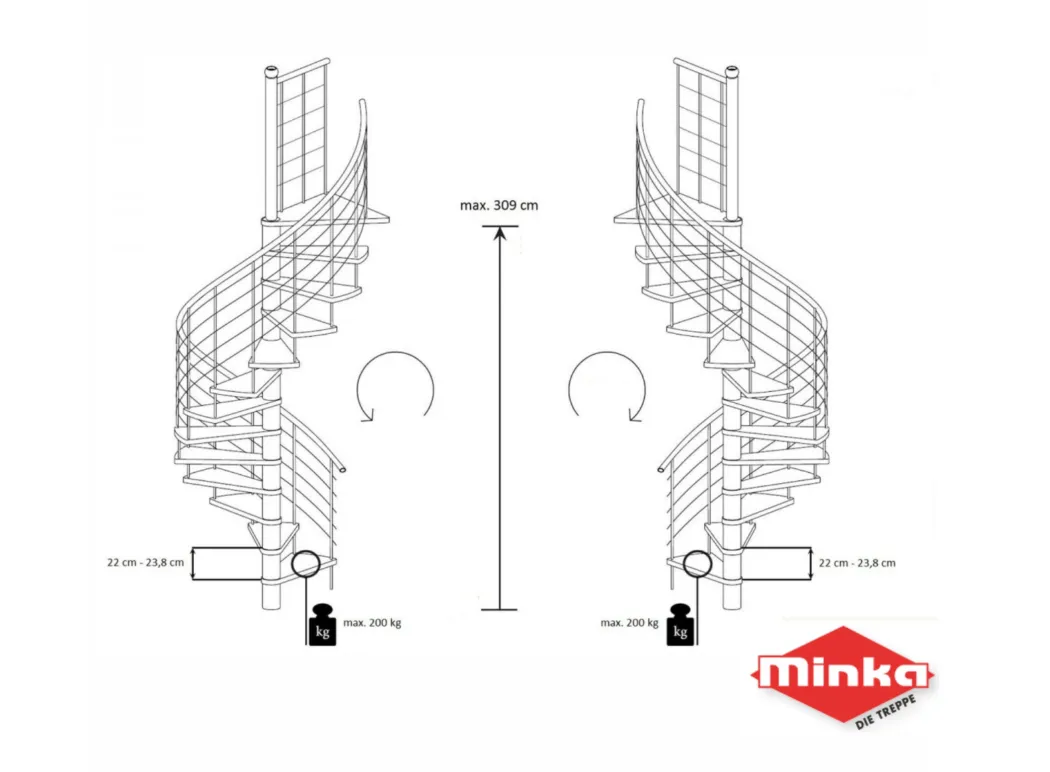 Cтупени и поручень изготовлены из массива бука и покрыты специальным лаком от компании Минка, который предотвращает царапины, сколы или стирание поверхности при интенсивном использовании лестницы. Благодаря возможности регулировать высоту шага с помощью пластиковых вставок (входят в базовый комплект), высоту лестницы можно варьировать в пределах от 2860 до 3090 мм. Кроме того, купив дополнительную секцию для этой лестницы, можно поднять высоту до 3320 мм.