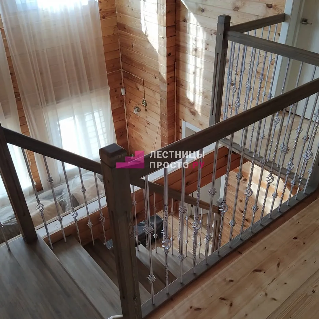 Лестница из ясеня с кованым ограждением по индивидуальному проекту LP-055